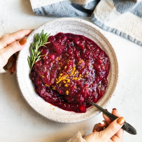 Take your fresh cranberry sauce up a notch by adding orange juice, a drizzle of maple syrup, and a splash of bourbon.