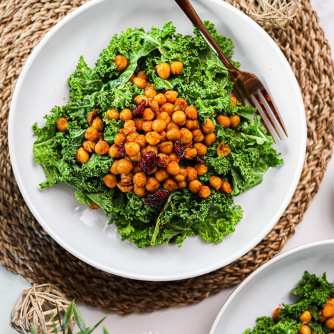 Massaged Kale Salad with Spicy Roasted Chickpeas
